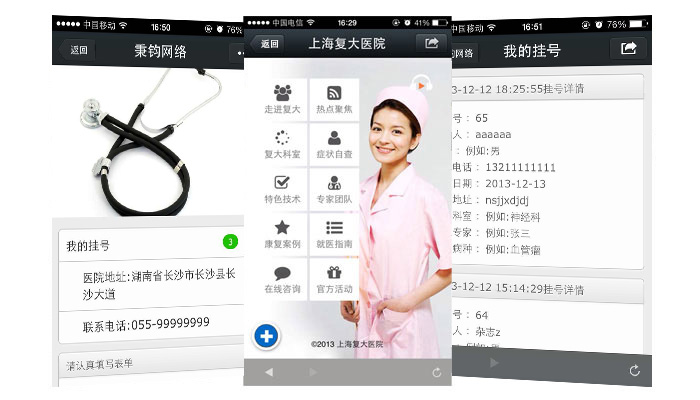 用戶可通過微信平臺實現(xiàn)在線掛號、內(nèi)容設(shè)置、預(yù)約查詢、預(yù)約統(tǒng)計的一整套服務(wù)體系,能夠有效解決患者掛號難、排隊累、就醫(yī)不方便等一系列難題