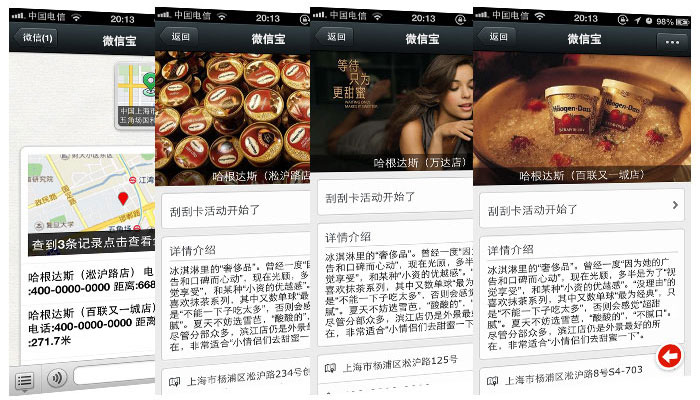 Location Surround Push(基于附近的人的消息推送)微信中基于LBS(基于位置的服務(wù))的功能插件“查看附近的人”便可以使更多陌生人看到這種強制性廣告。 用戶點擊“查看附近的人”后,可以根據(jù)自己的地理位置查找到周圍的微信用戶。在這些附近的微信用戶中,除了顯示用戶姓名等基本信息外,還會顯示用戶簽名檔的內(nèi)容。所以用戶可以利用這個免費的廣告位為自己的產(chǎn)品打廣告。 營銷人員在人流最旺盛的地方后臺24小時運行微信,如果“查看附近的人”使用者足夠多,這個廣告效果也會不斷隨著微信用戶數(shù)量的上升,可能這個簡單的簽名欄也會變成會移動的“黃金廣告位”。
